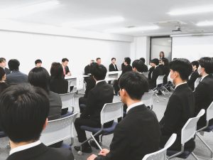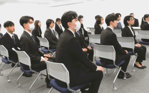 挑むことの大切さが語られ、新入社員のみなさんは緊張の面持ちながらも